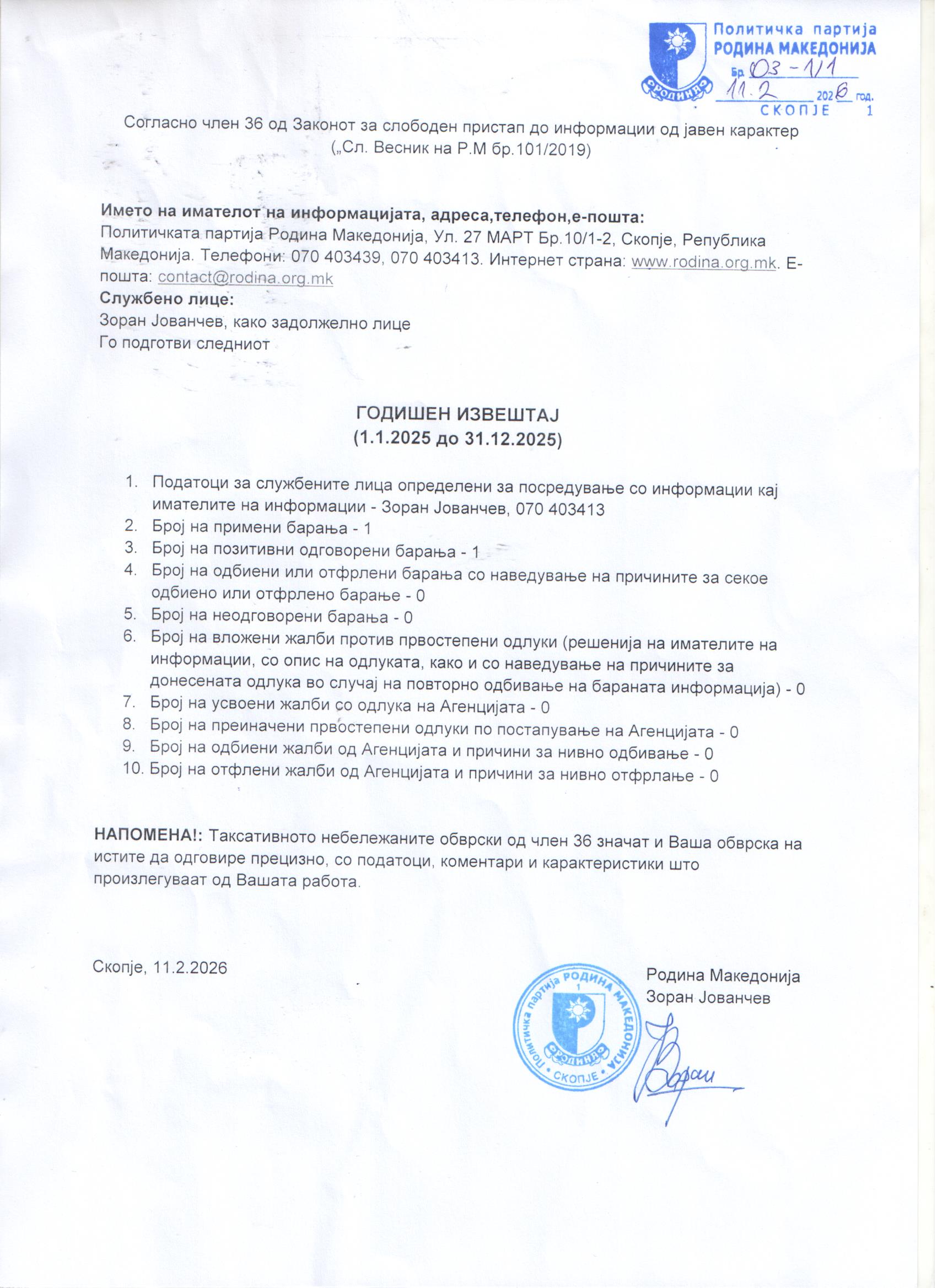 - Годишен извештај-Слободен пристап до информации од 1.1.2024 – 31.12.2024