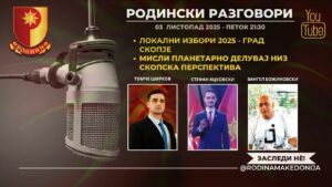ТЕМИ: УЧЕСНИЦИ: ТОМЧЕ ШИРКОВ – Претседавач на претседателството на Родина Македонија ЗОРАН ЈОВАНЧЕВ – Член на претседателството на Родина Македонија СТЕФАН АЦКОВСКИ – Претседавач на Родина Млади На нашиот официјален јутуб, фејсбук канал и на Х (твитер) платформата